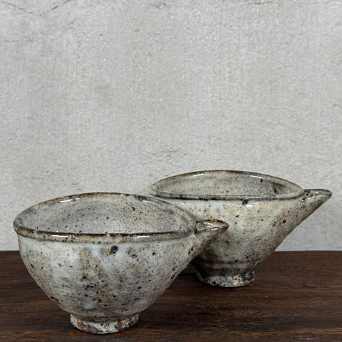 Katakuchi (sake pourer) in shirokake (white glaze) by Japanese master potter, Toru Hatta, from January 2026.