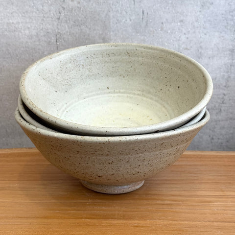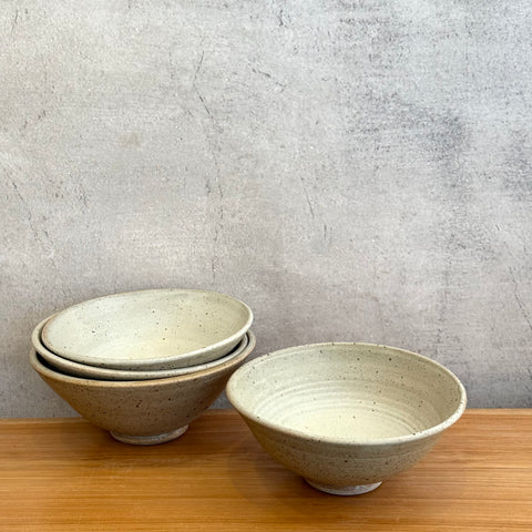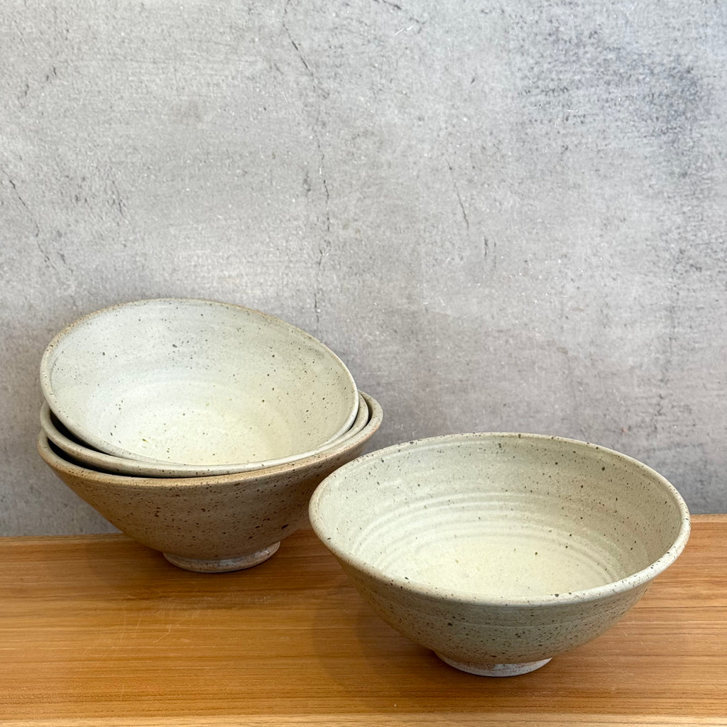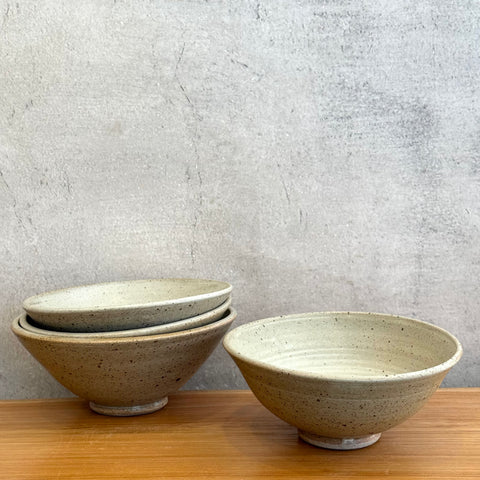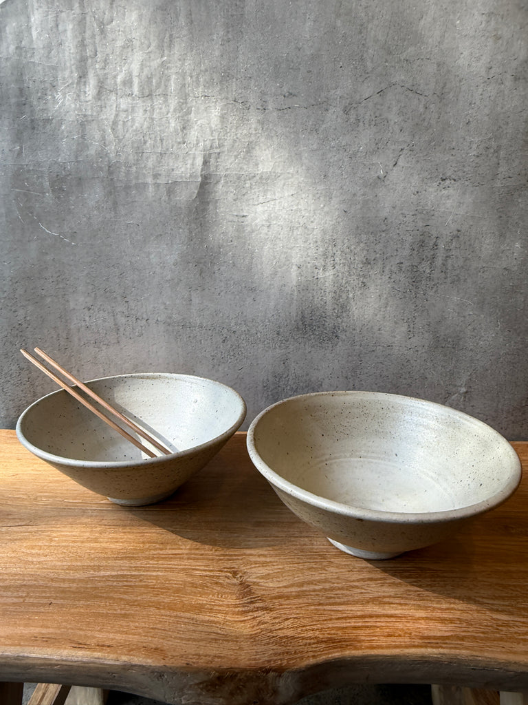 Large ramen bowls in magnesium glaze over white slip, by David Collins from November 2025.