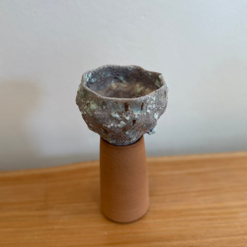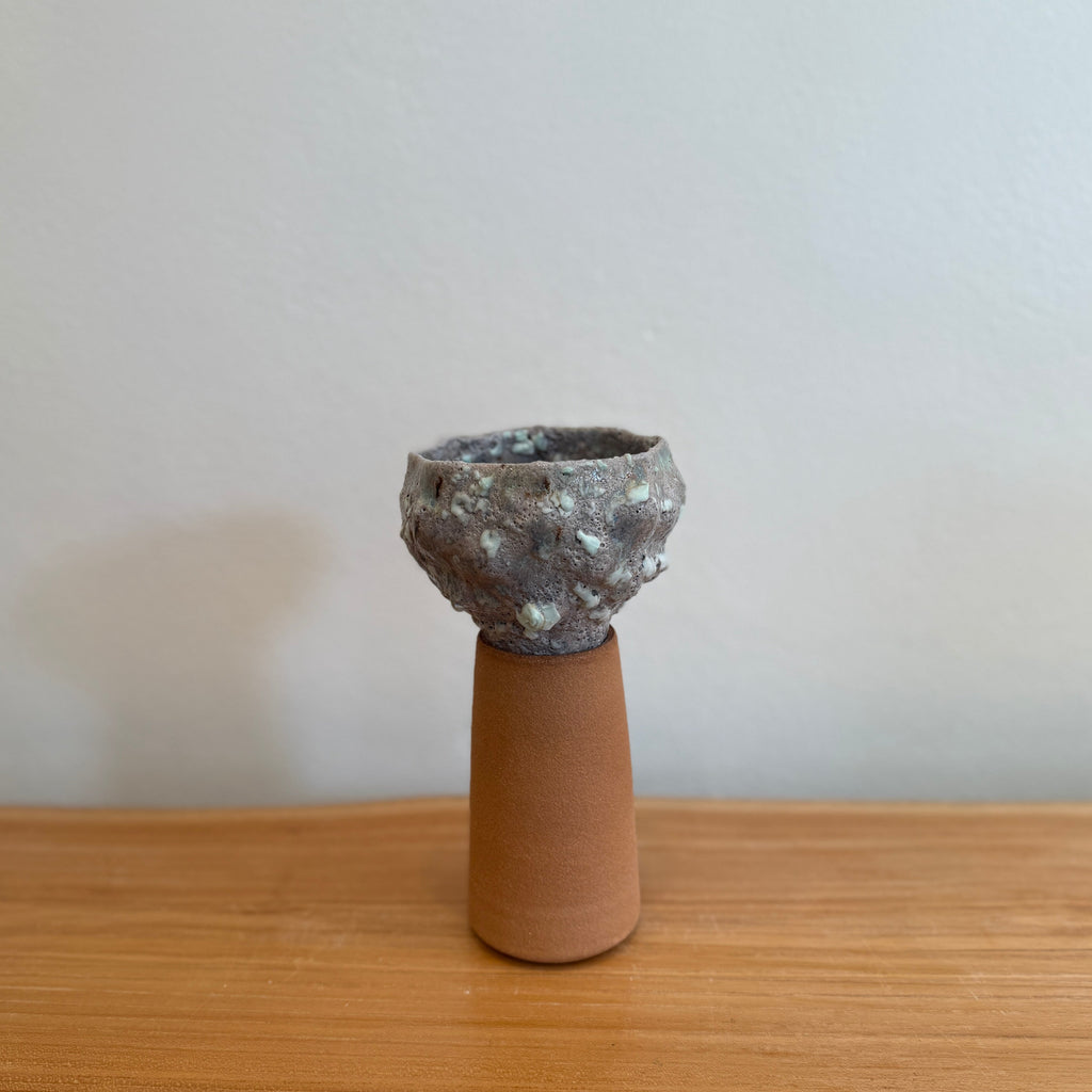 Small ceramic vase with detachable bowl by Rina Bernabei from November 2025.