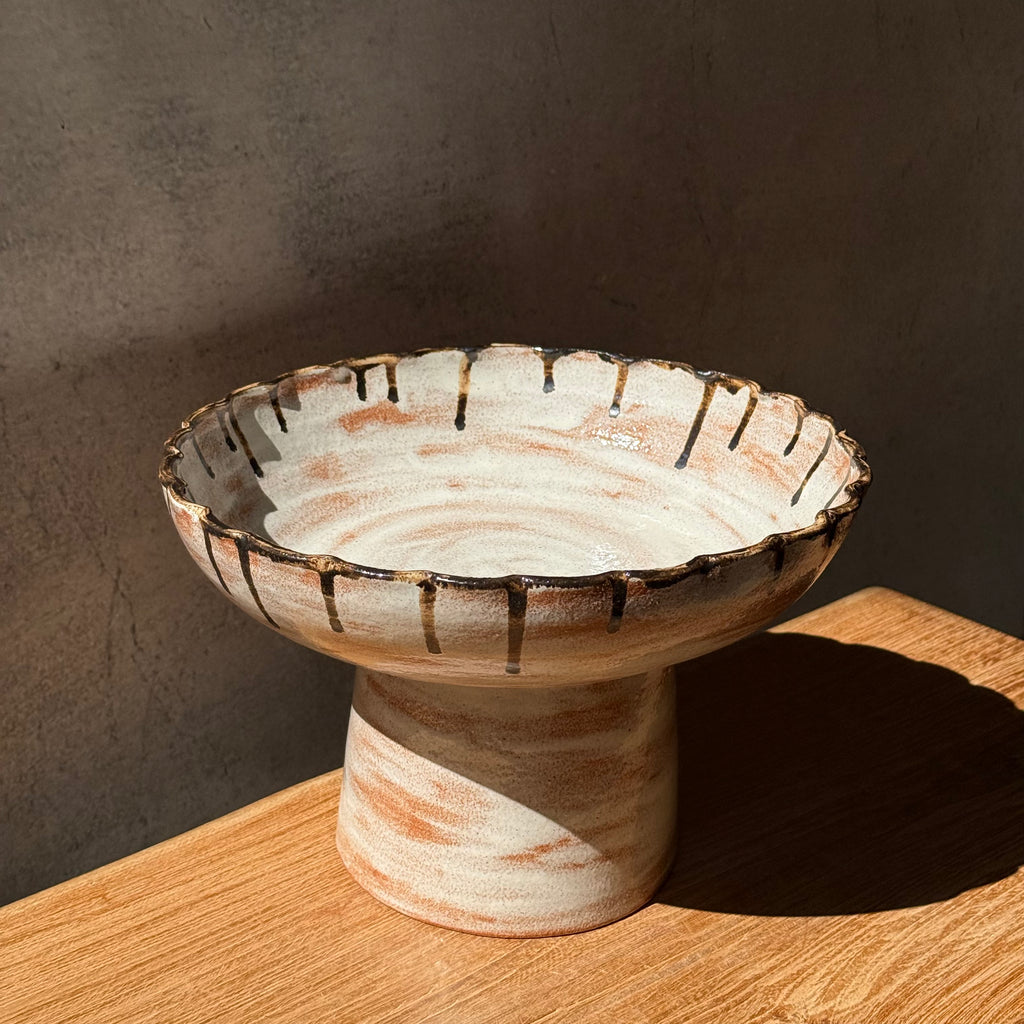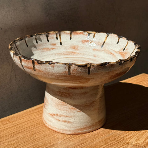 Large, ceramic pedestal bowl by Rina Bernabei from December 2025.