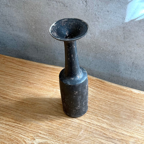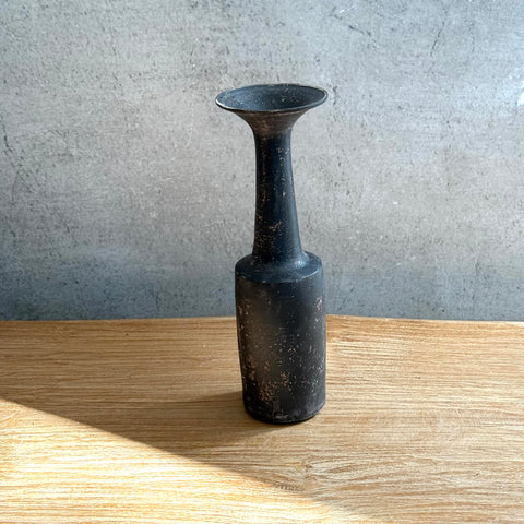 Medium-sized, trumpet-shaped vase in black by Tetsuya Ōzawa, from the exhibition "serious PLAY", August 2025 at DEA EAST.