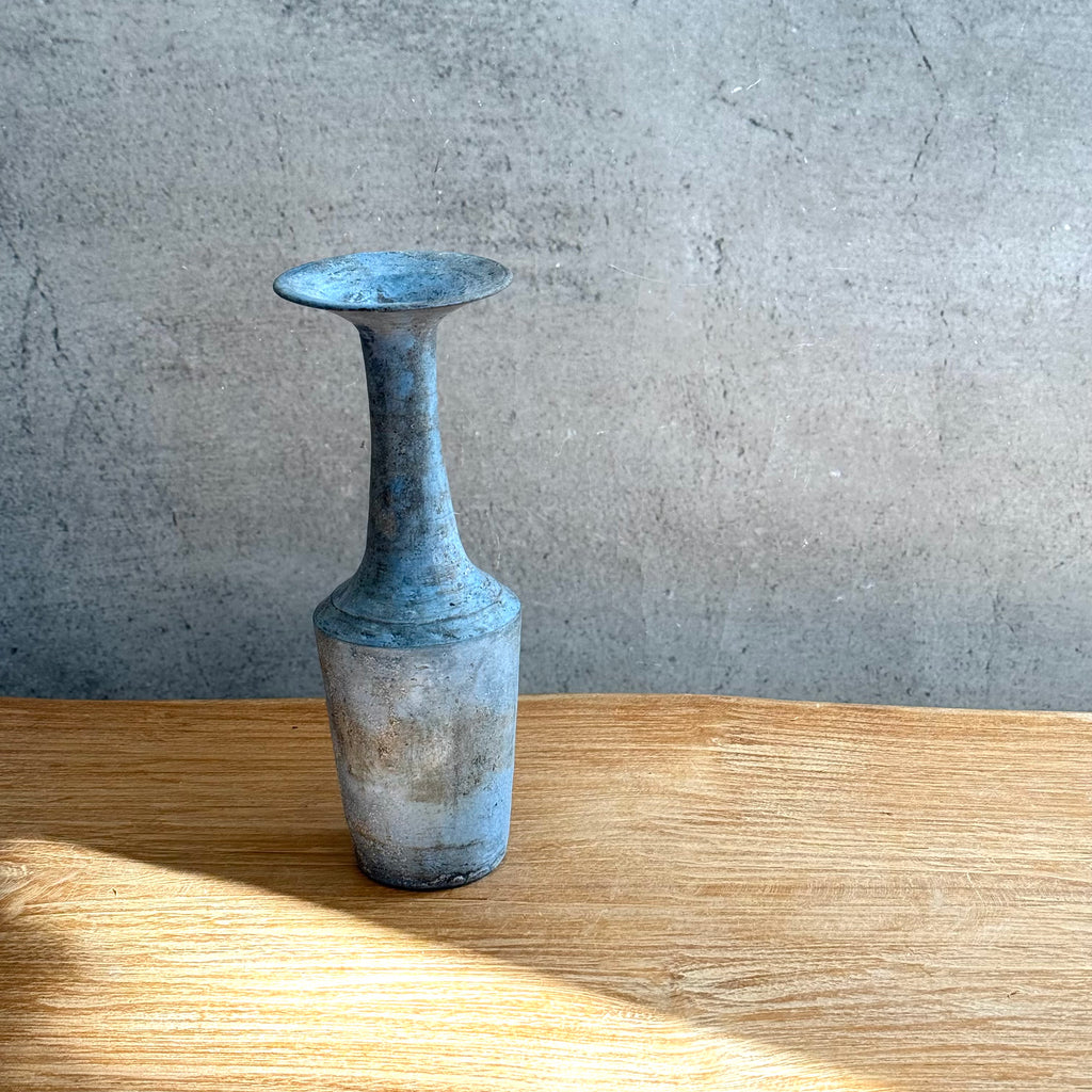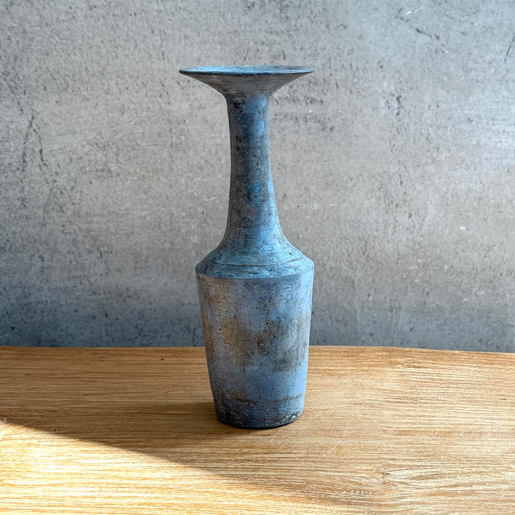 Medium-sized, trumpet-shaped vase in blue by Tetsuya Ōzawa, from the exhibition "serious PLAY", August 2025 at DEA EAST.