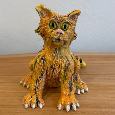 Ceramic sculpture of a cat (called "Tom") by multi-disciplinary artist Christian Bonett from December 2025.