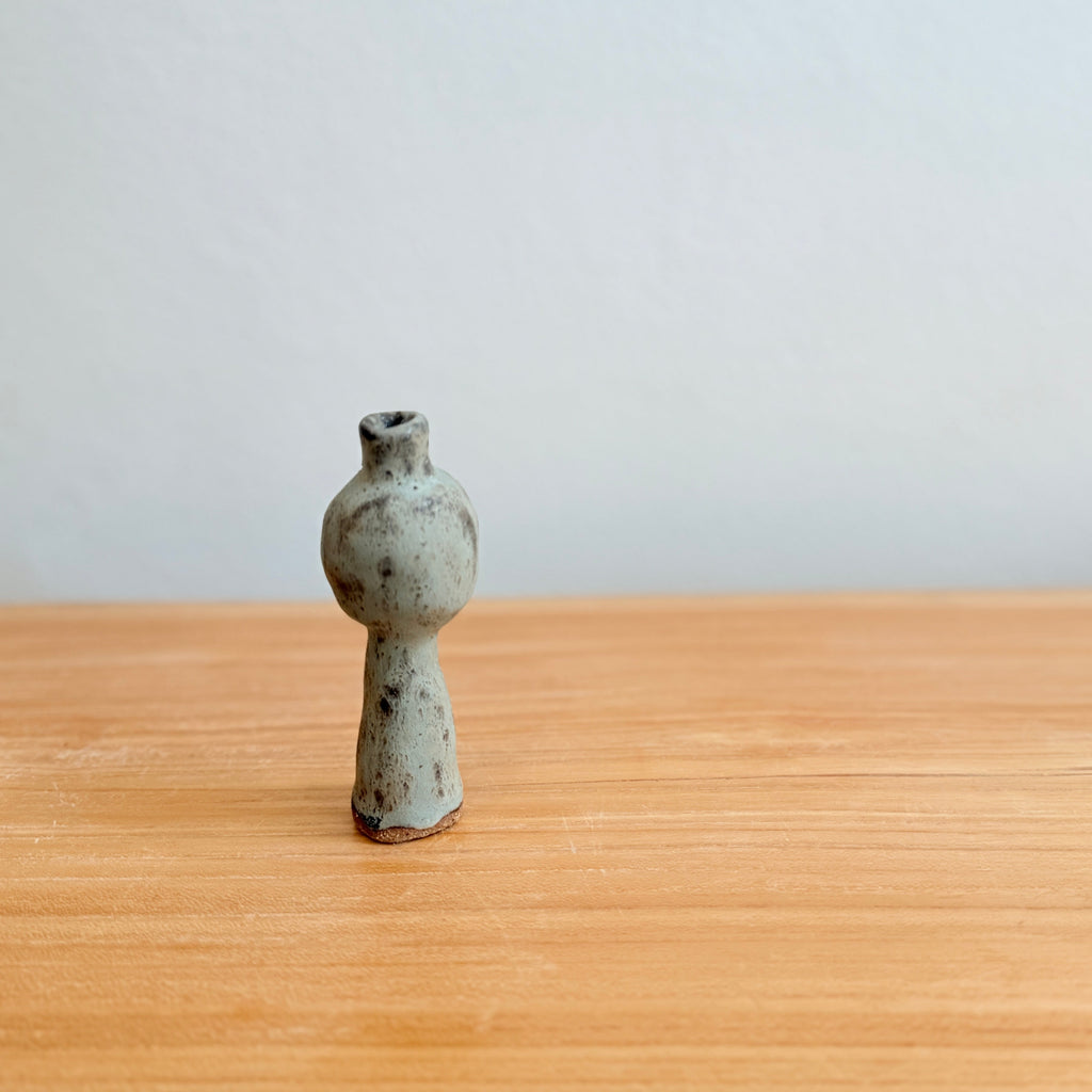 Tiny, pod-shaped ceramic bud vase by Emma Young, from December 2025.