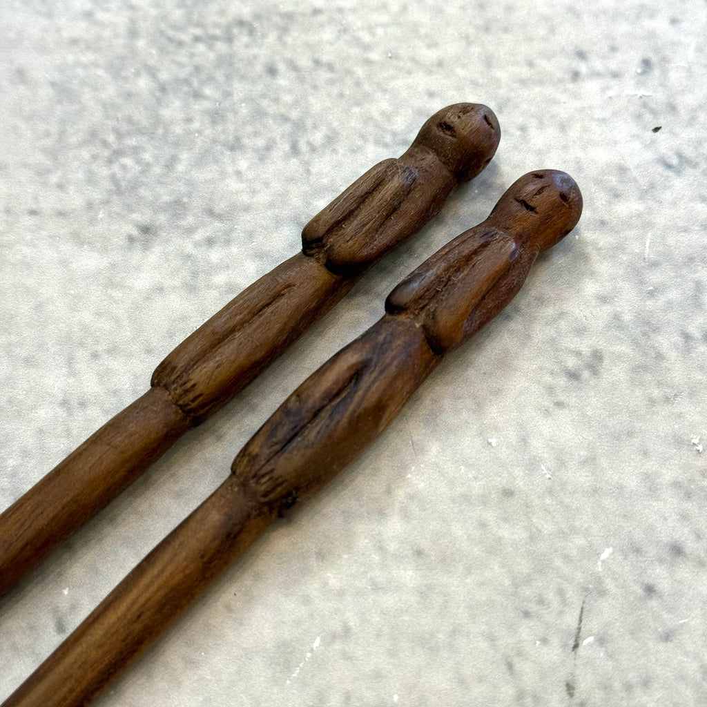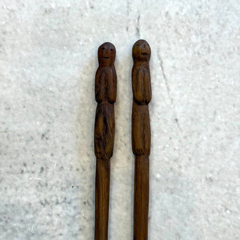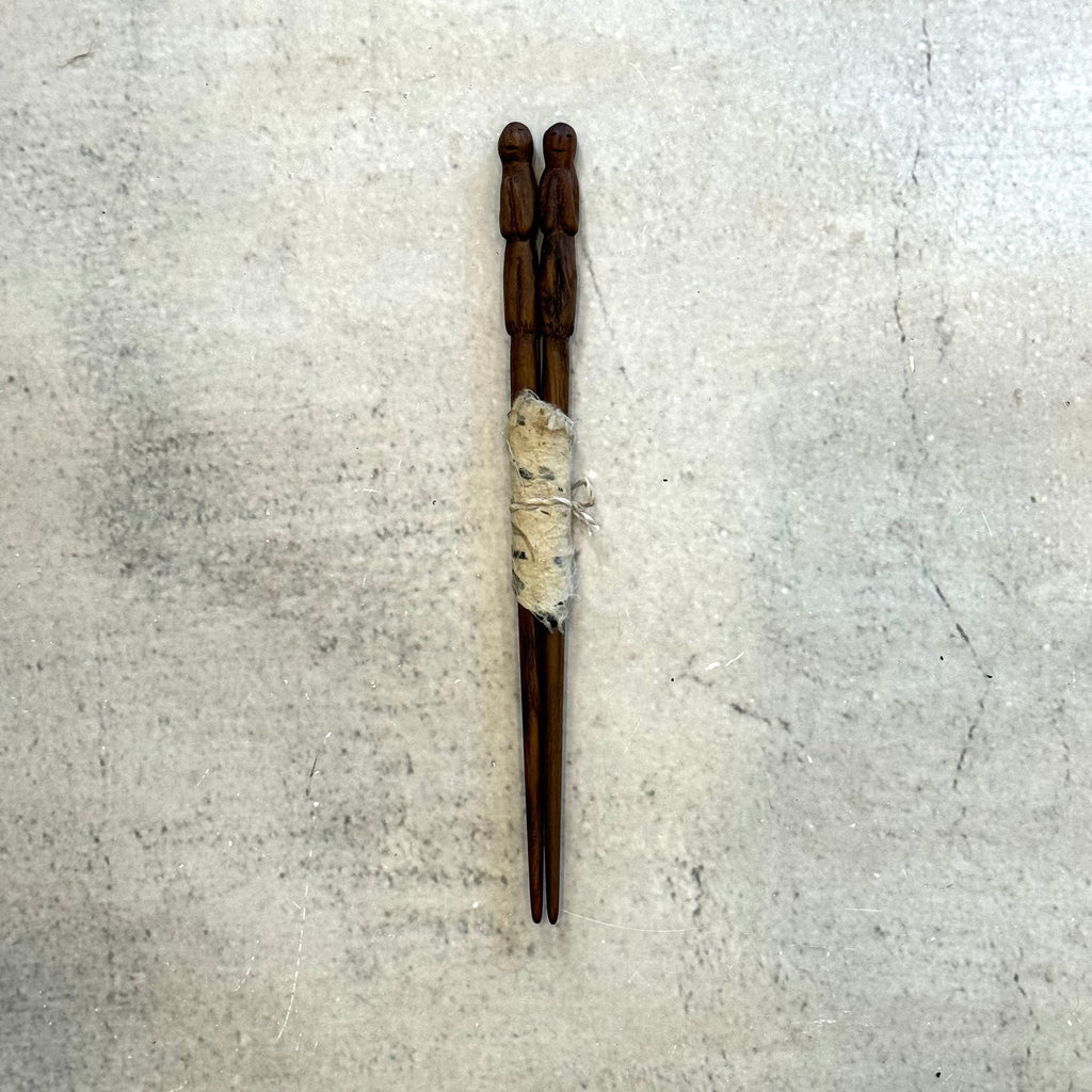 Hand-carved wooden chopsticks with "people" design by Izumi Okuyama from December 2025.