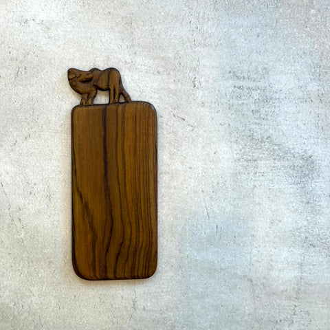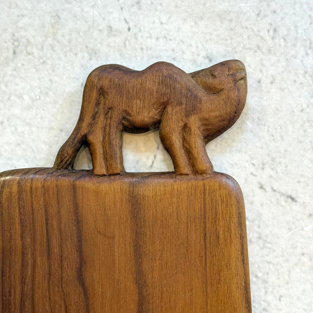 Hand-carved wooden serving board with "Camel" design by Izumi Okuyama from December 2025.