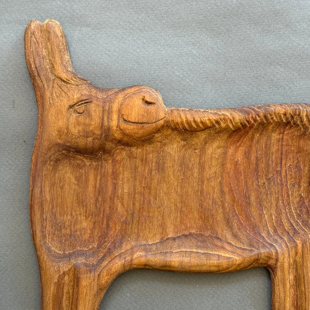 Hand-carved wooden serving tray with "horse" design by Izumi Okuyama from December 2025.