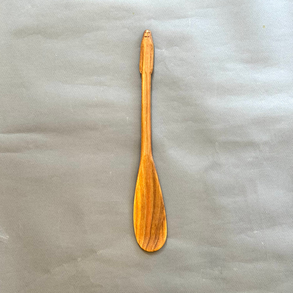 Hand-carved wooden spatula with "ghost" design by Izumi Okuyama from December 2025.