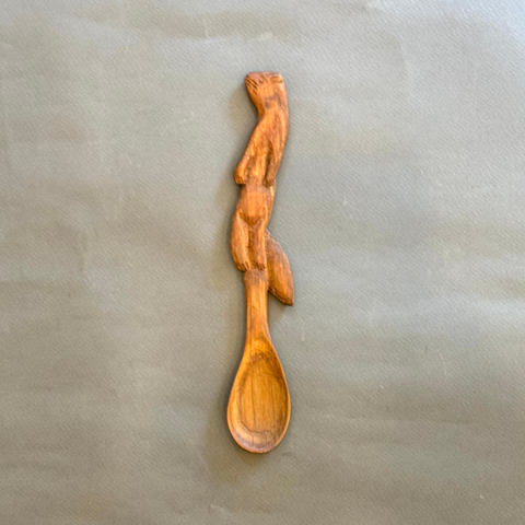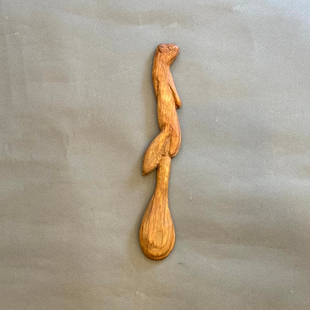 Hand-carved wooden spoon with "otter" design by Izumi Okuyama from December 2025.