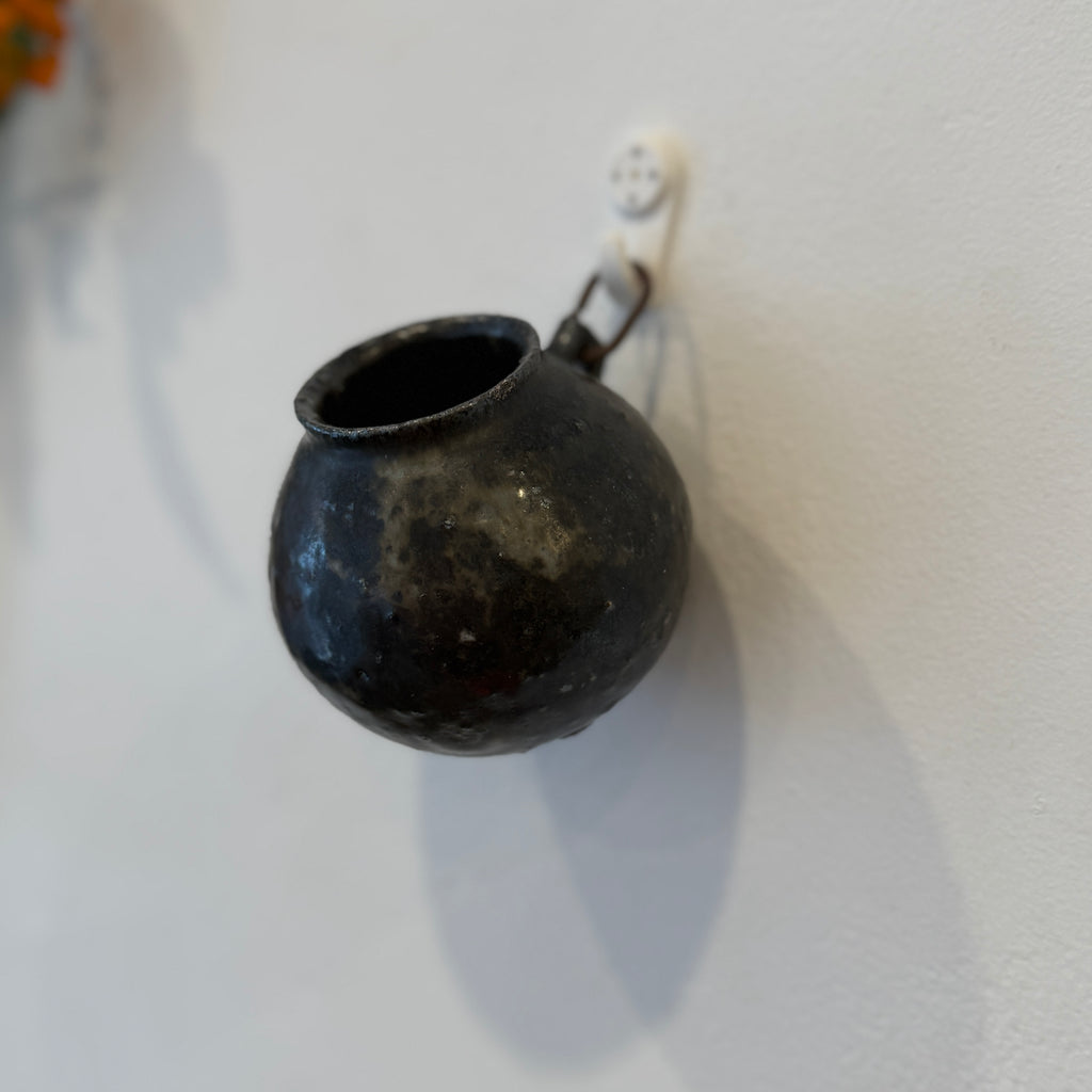Small rounded wall vase in a black glaze by Japanese master potter, Toru Hatta, from January 2026.