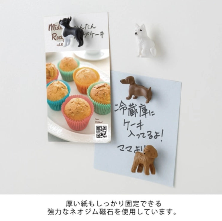 Four piece miniature magnet set depicting dogs by Midori.