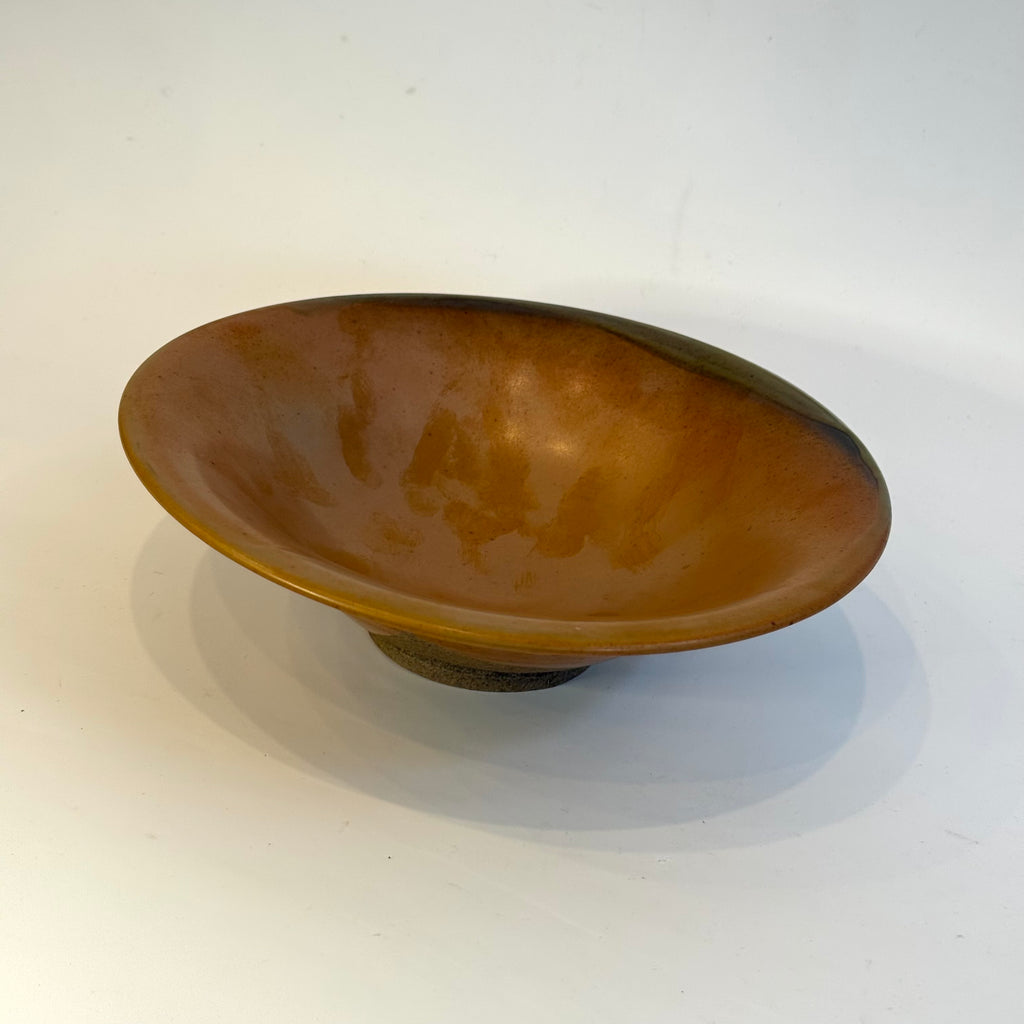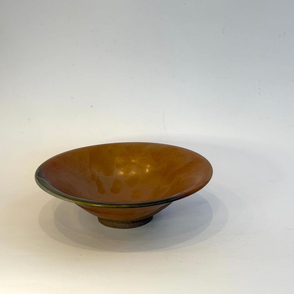 Medium-sized, footed ceramic bowl in akane karatsu (red Karatsu clay), by Yukiko Tsuchiya from November 2025.