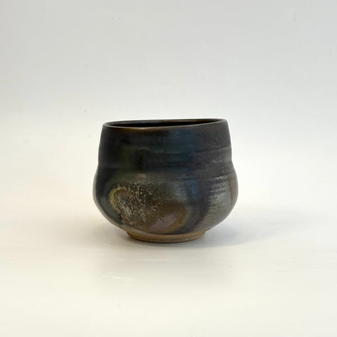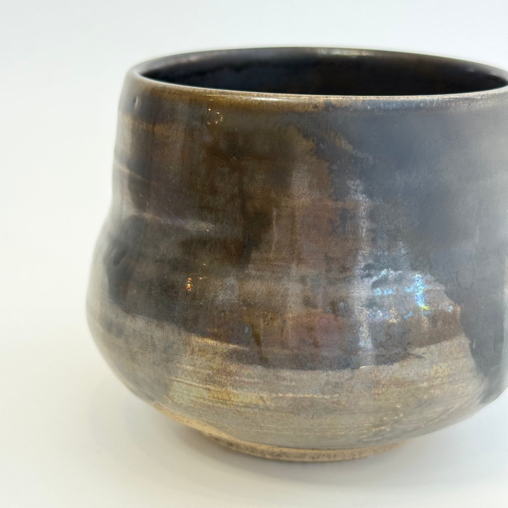 Ceramic chawan (tea bowl) in kurogaratsu (black Karatsu clay) by Yukiko Tsuchiya from November 2025.