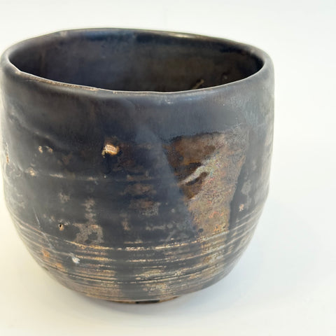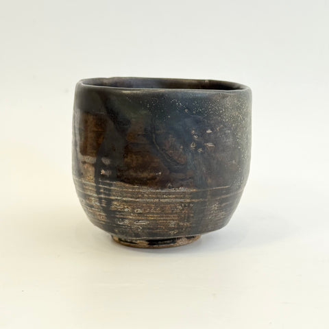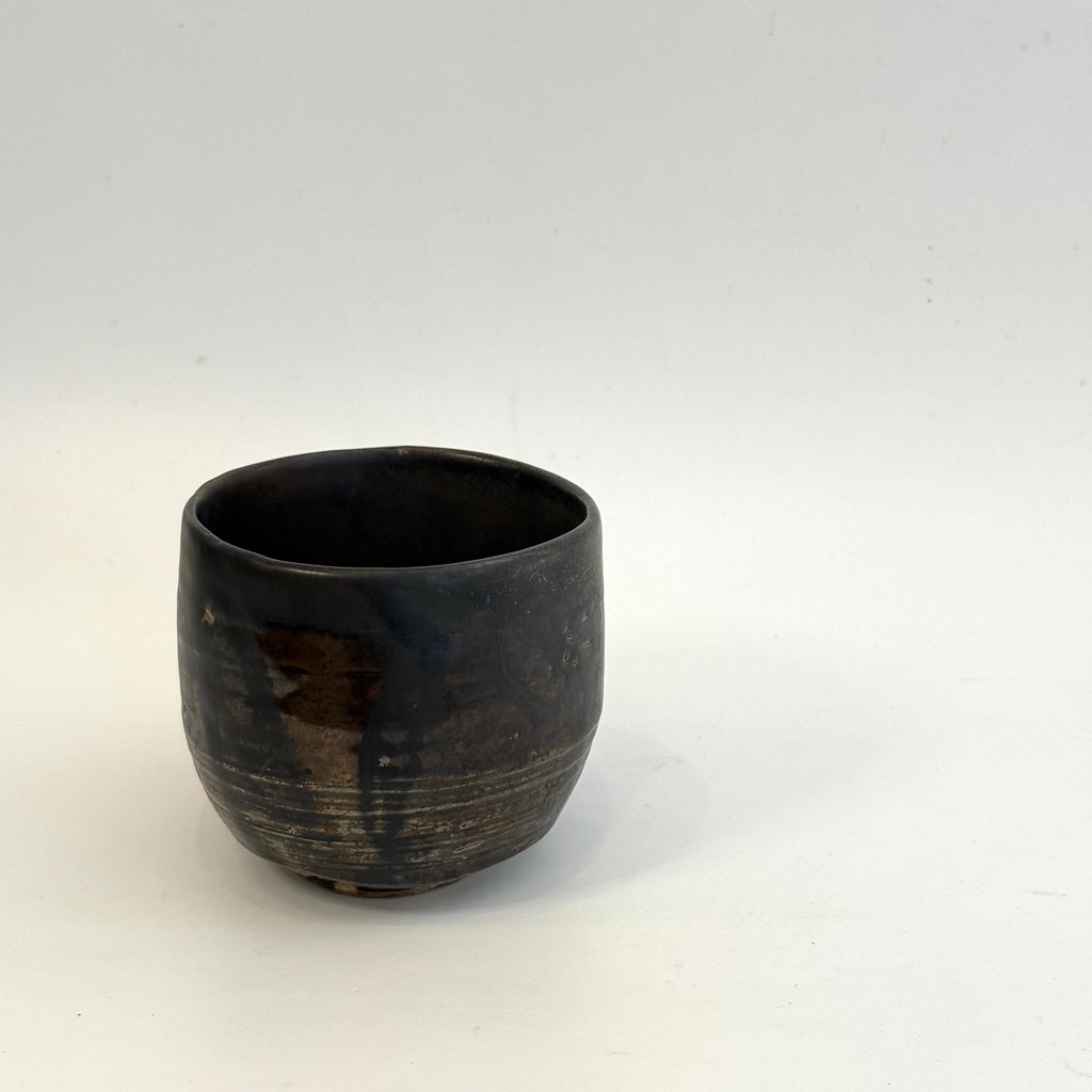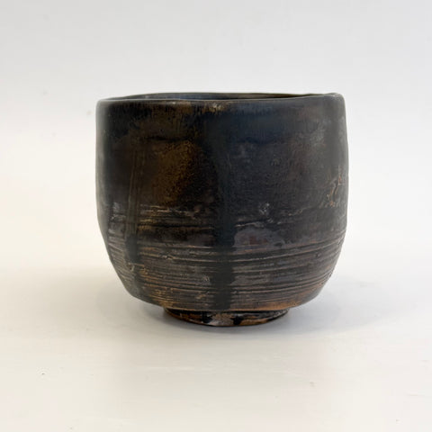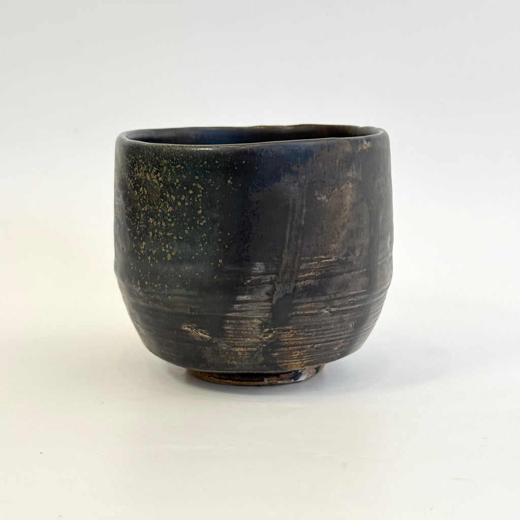 Ceramic chawan (tea bowl) in kurogaratsu (black Karatsu clay) by Yukiko Tsuchiya from November 2025.