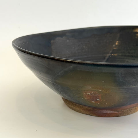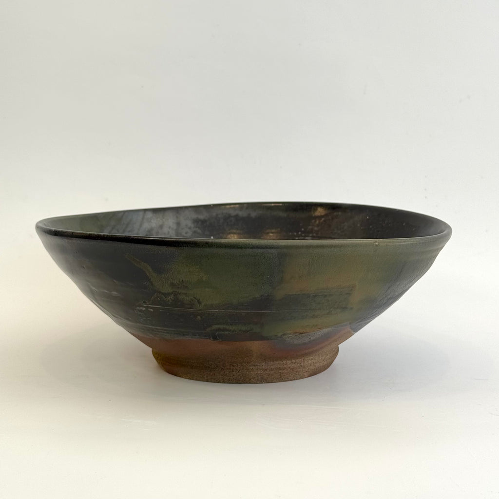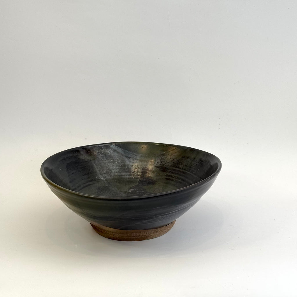 Large, wide, deep ceramic bowl in kurogaratsu (black Karatsu clay) by Yukiko Tsuchiya from November 2025.