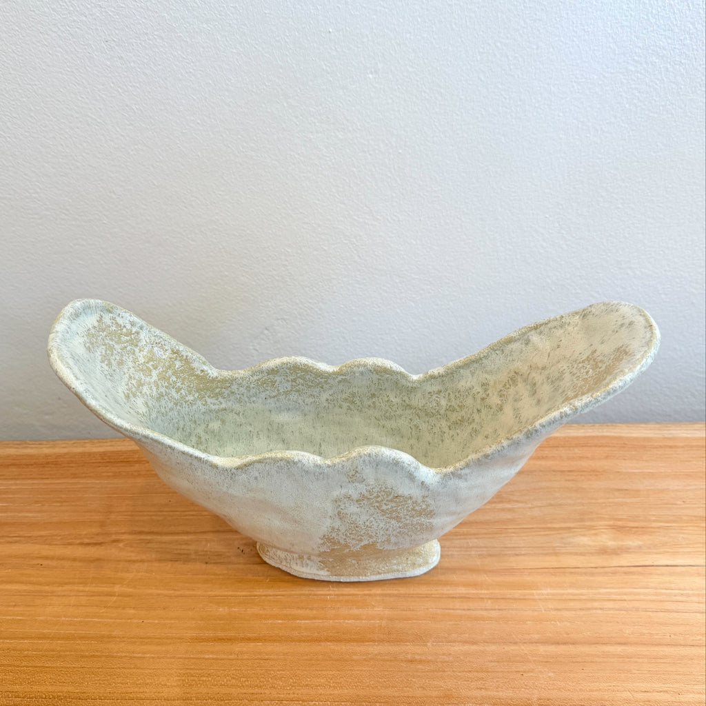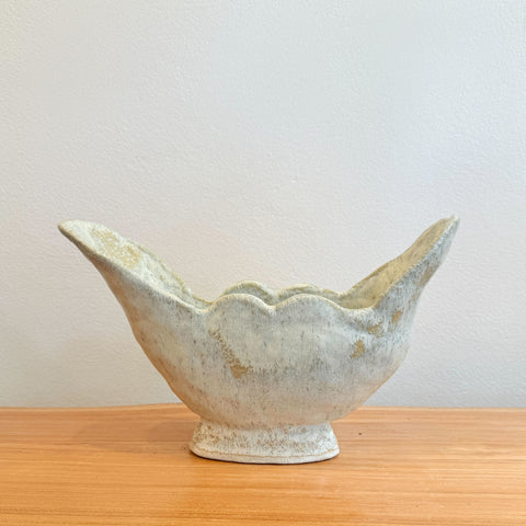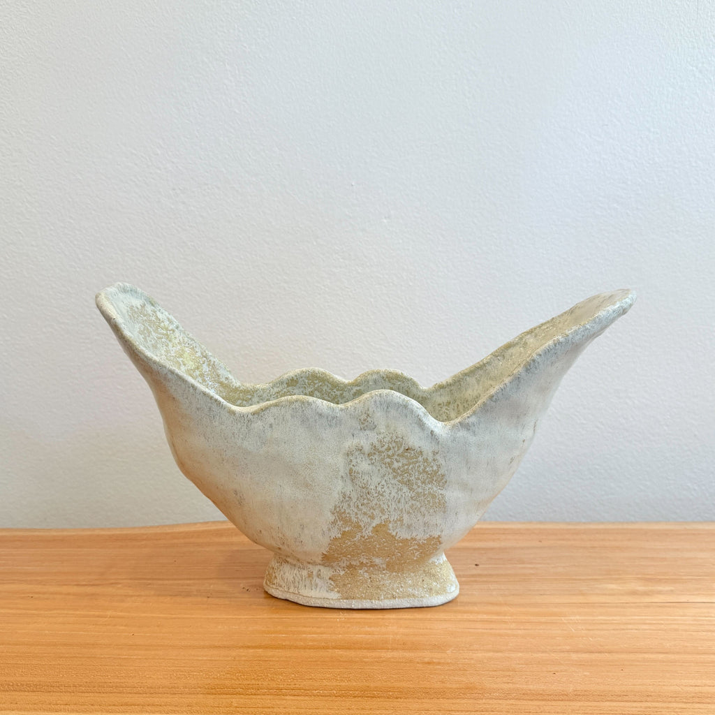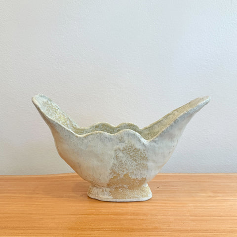 Catherine Field, the potter behind Splendid Wren Ceramics, works with stoneware clay using traditional hand building techniques. Her work features natural, earthy glazes and a neutral colour palette inspired by nature. She embraces the natural look of the clay and prefers a deliberately handmade, organic quality.