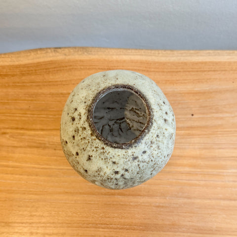 Small, orb-shaped pedestal vase by Catherine Field from November 2025.