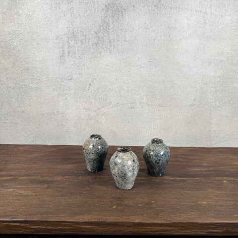 These sweet, diminutive vessels have a tall, urn-shaped form with a wide, rimmed opening.