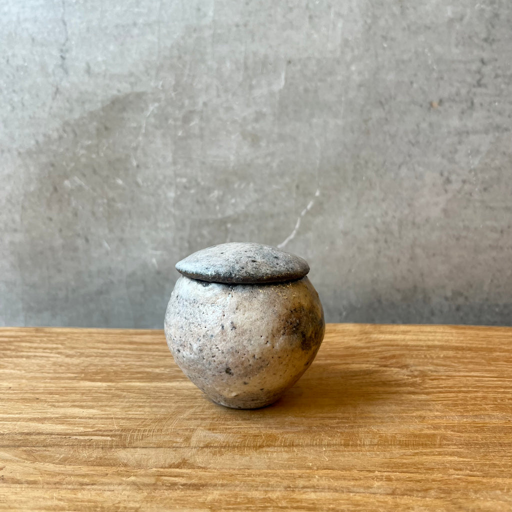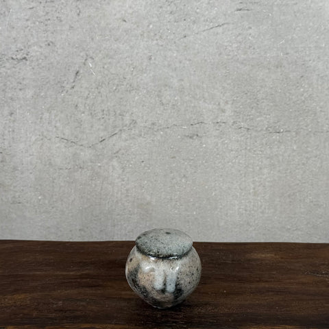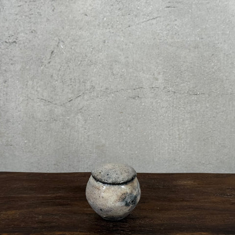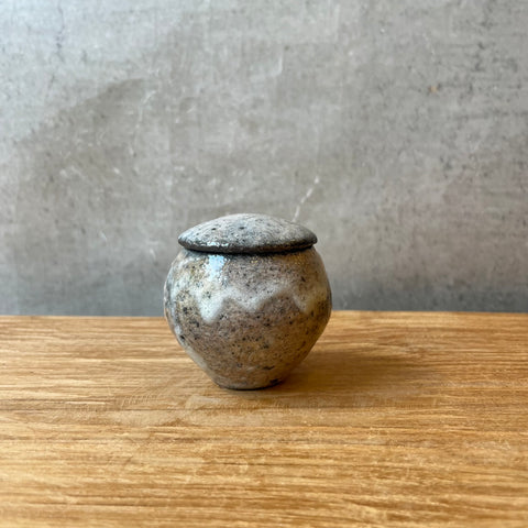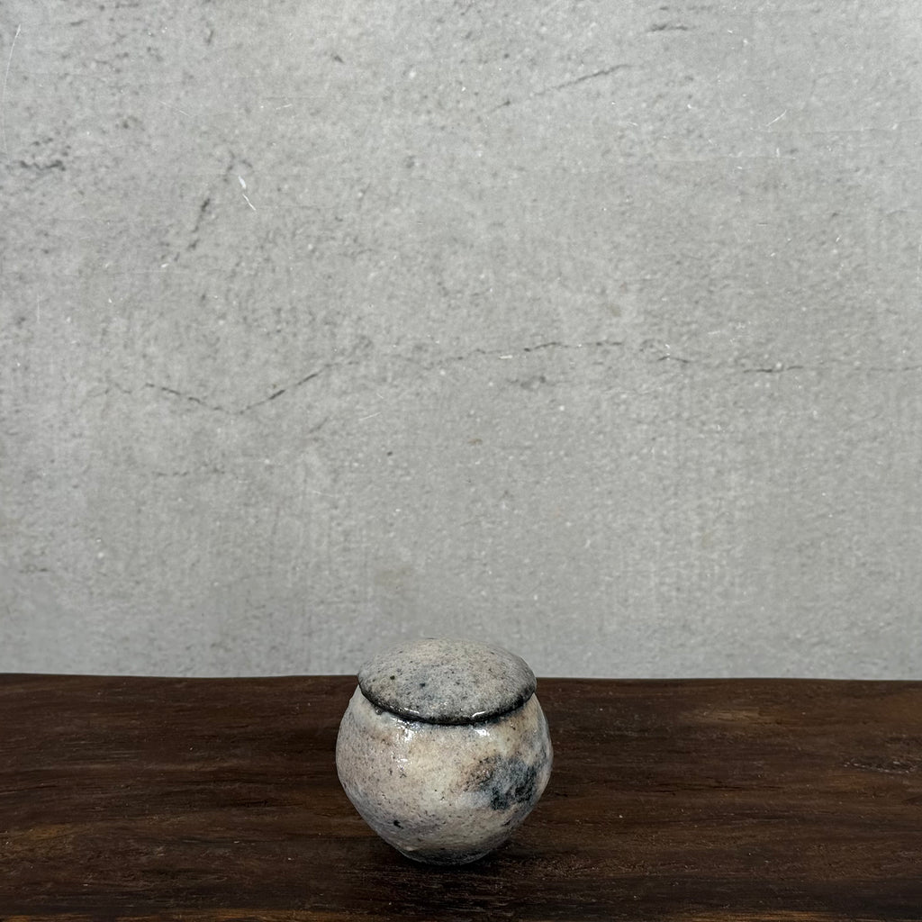 Extra-small ceramic canister in shirokake (white glaze) by Japanese master potter, Toru Hatta, from January 2026.