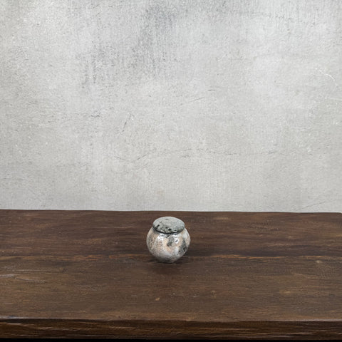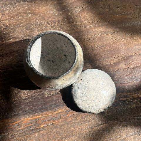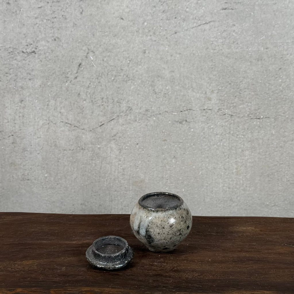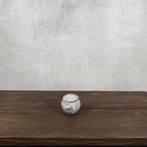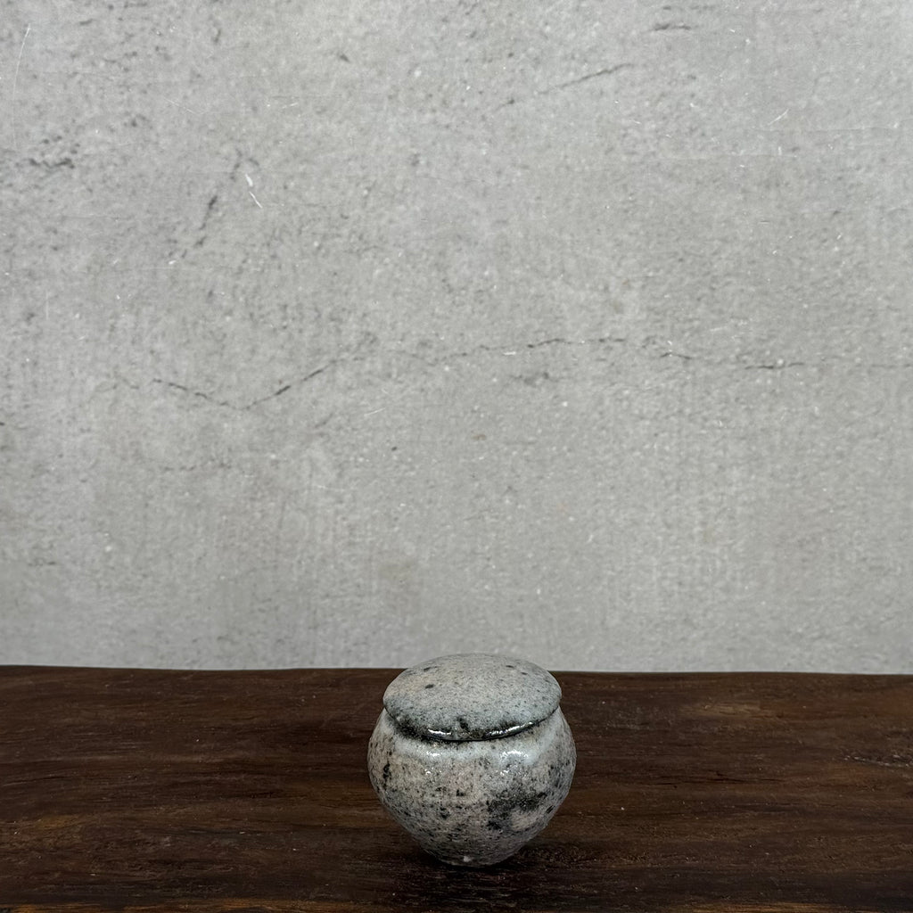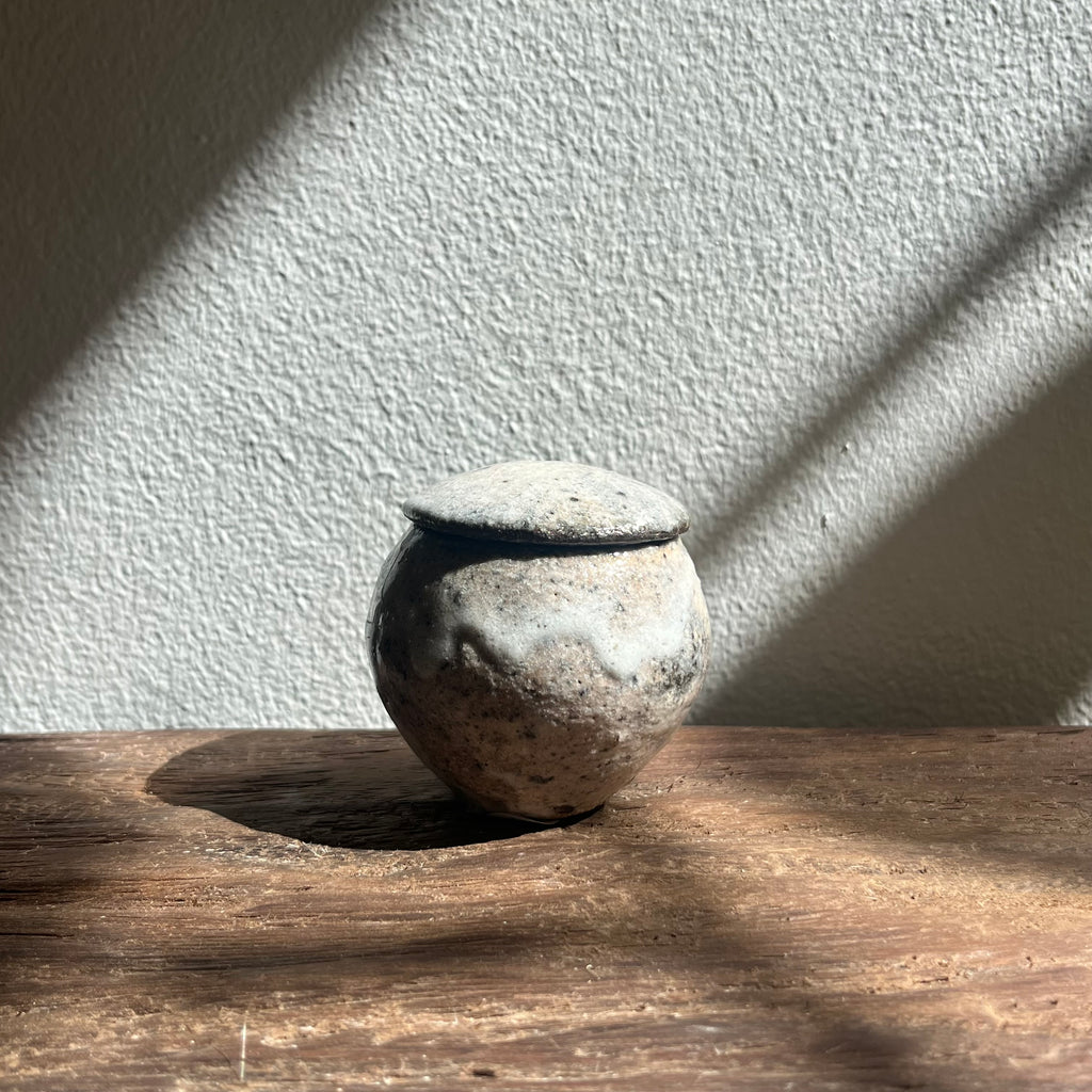 Extra-small ceramic canister in shirokake (white glaze) by Japanese master potter, Toru Hatta, from January 2026.