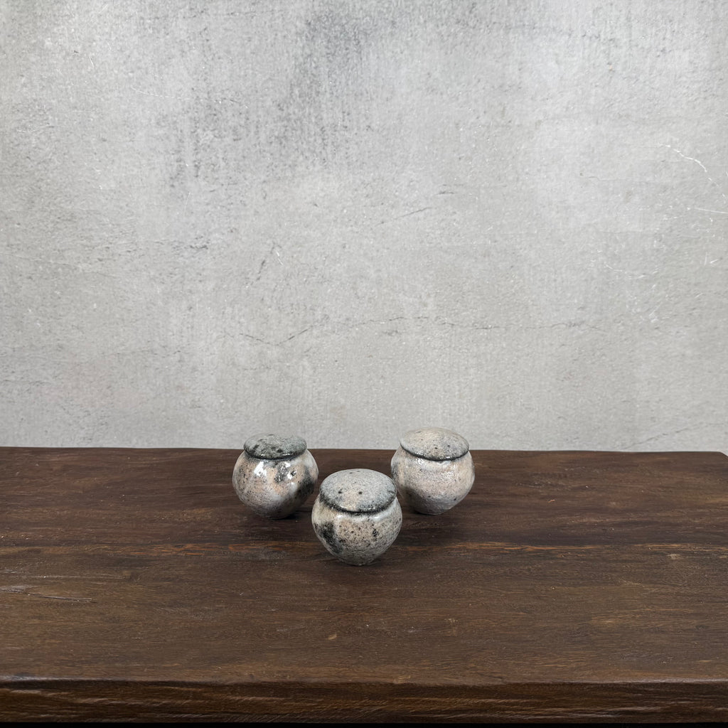 The extra-small canisters are available in two glazes - shirokake and kurokake.