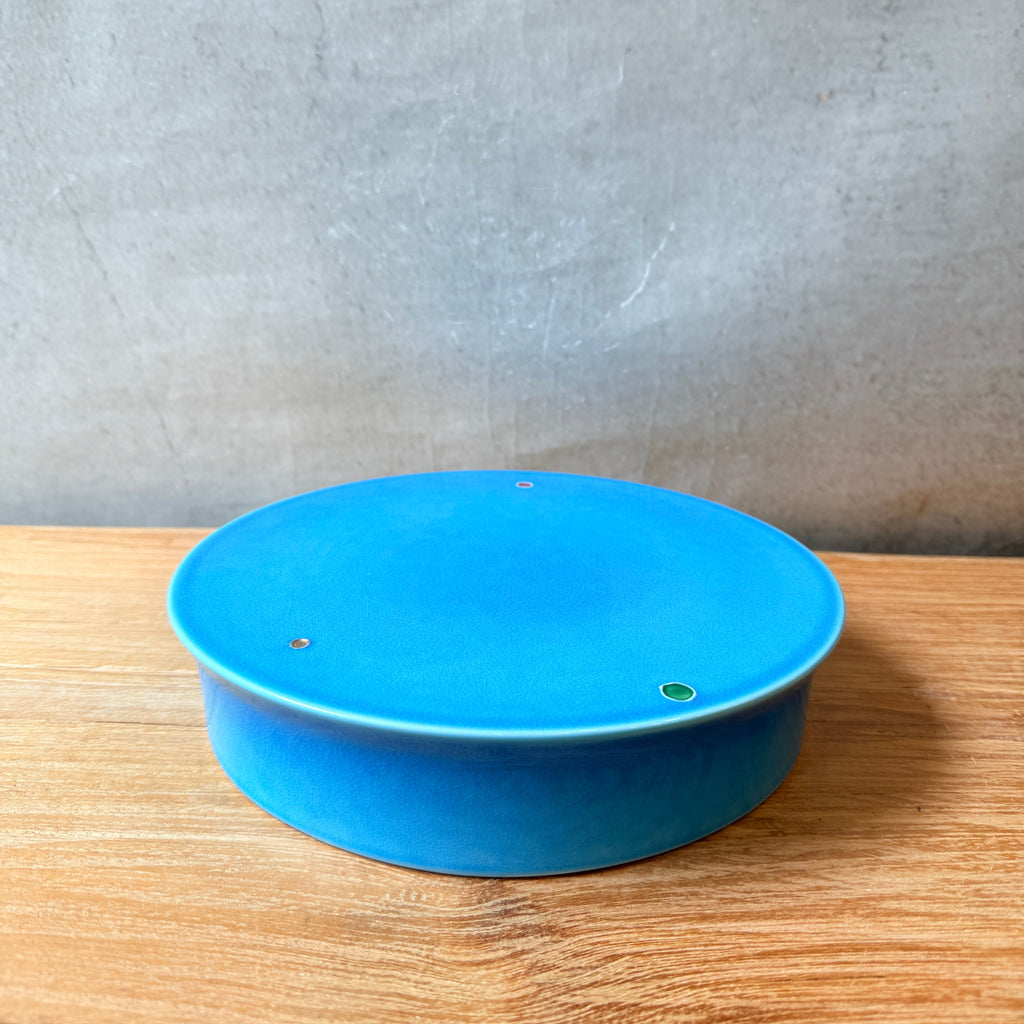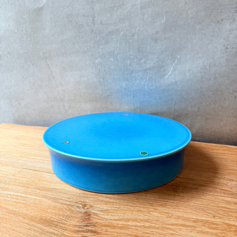 Medium-sized, Japanese vintage cake stand in a glossy, sky-blue glaze
