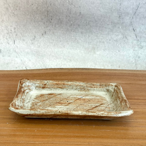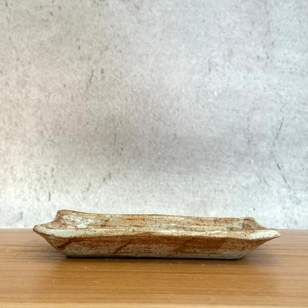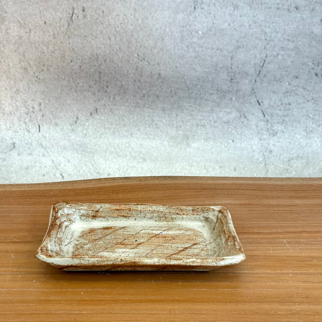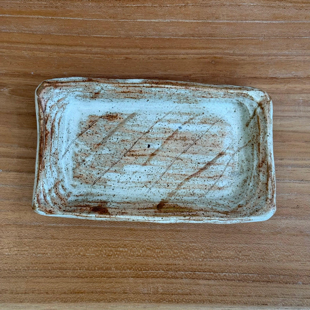 Small rectangular ceramic tray by Timna Taylor from October 2025.