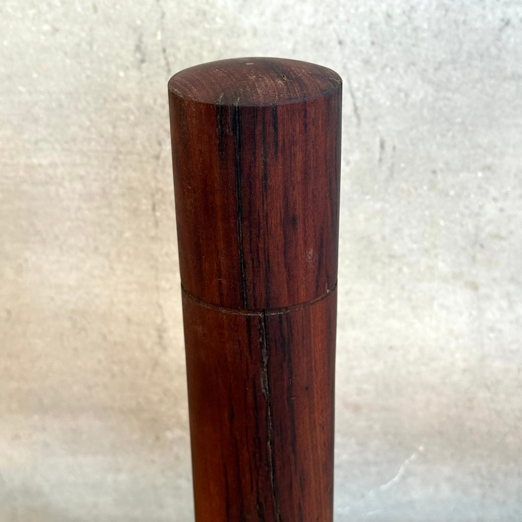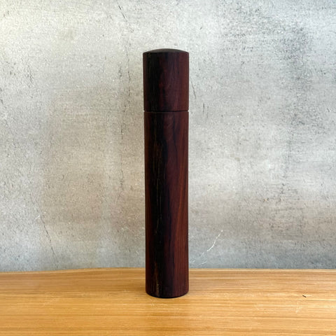 The wood in this mill was reclaimed at Merringandan, Qld, then turned by hand on the Gold Coast, Queensland. It features the wood's deep red hue and fiddleback grain.