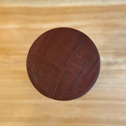 The wood in this mill was reclaimed at Merringandan, Qld, then turned by hand on the Gold Coast, Queensland. It features the wood's deep red hue and significant natural edge.