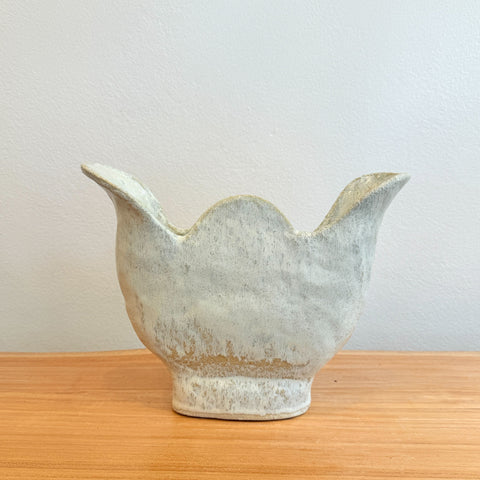 Catherine Field, the potter behind Splendid Wren Ceramics, works with stoneware clay using traditional hand building techniques. Her work features natural, earthy glazes and a neutral colour palette inspired by nature. She embraces the natural look of the clay and prefers a deliberately handmade, organic quality.