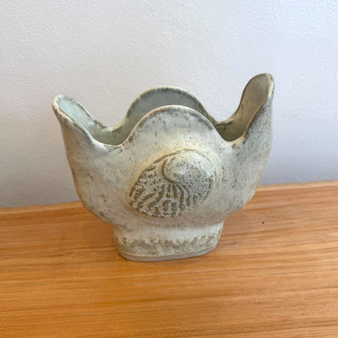 Catherine Field, the potter behind Splendid Wren Ceramics, works with stoneware clay using traditional hand building techniques. Her work features natural, earthy glazes and a neutral colour palette inspired by nature. She embraces the natural look of the clay and prefers a deliberately handmade, organic quality.