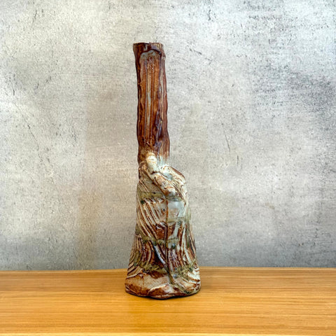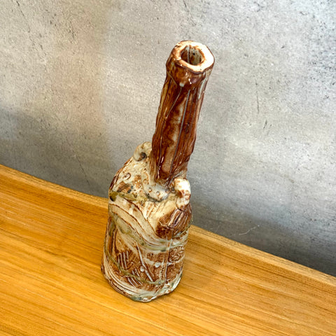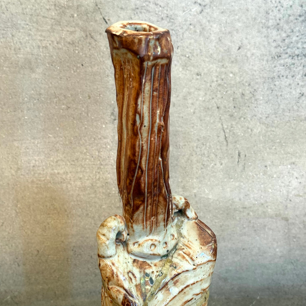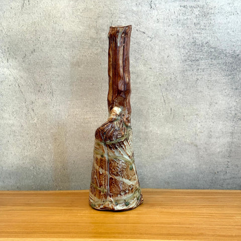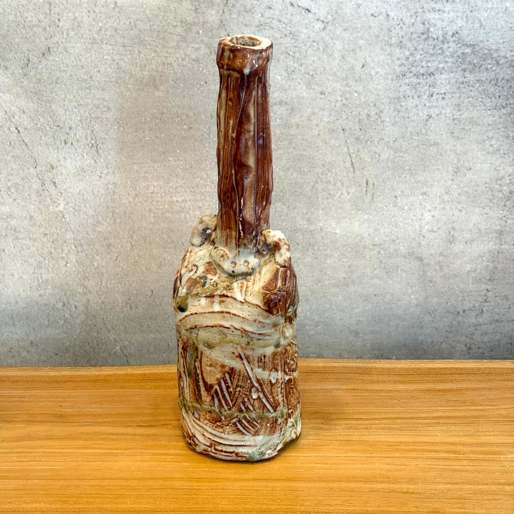 Tall, hand-built ceramic bottle vase by David Collins from November 2025.