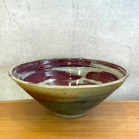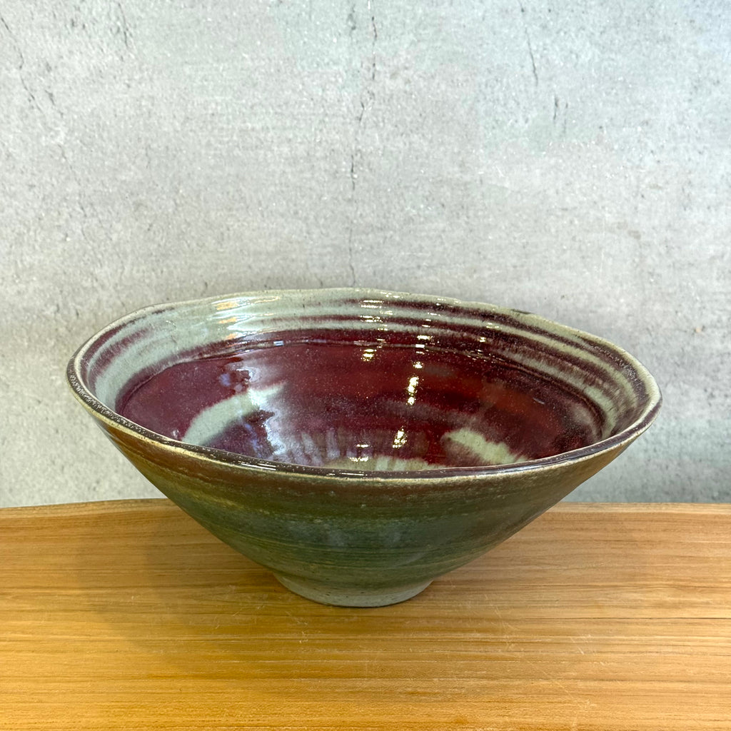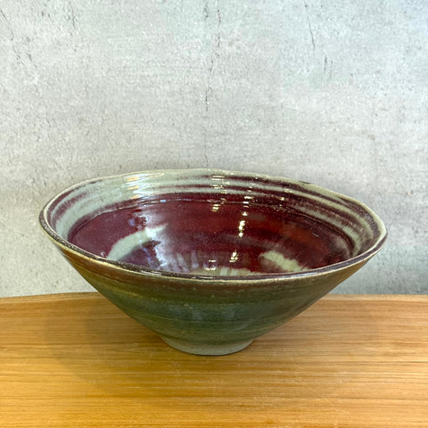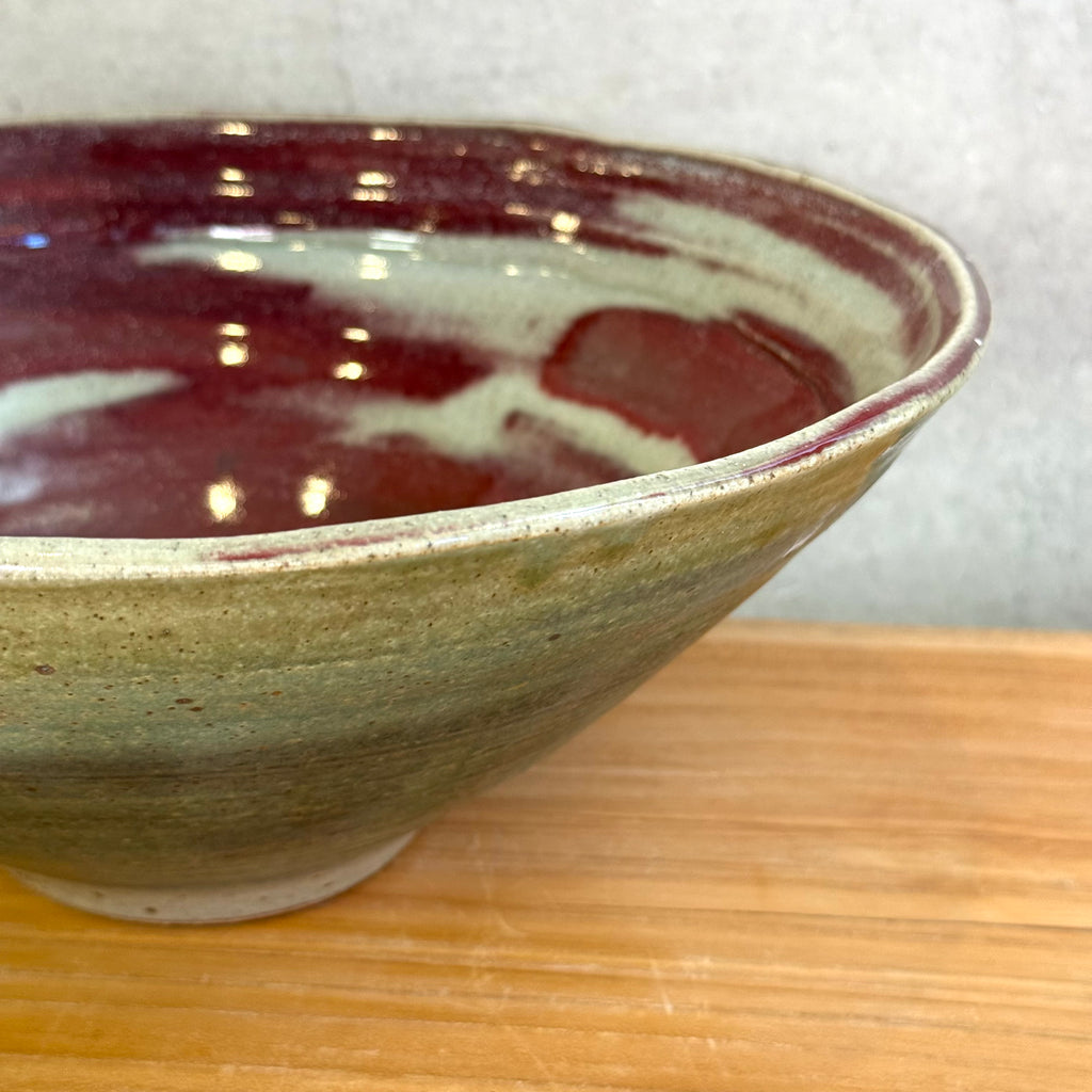 Extra-large salad bowl in ash glaze over copper slip, by David Collins from November 2025.