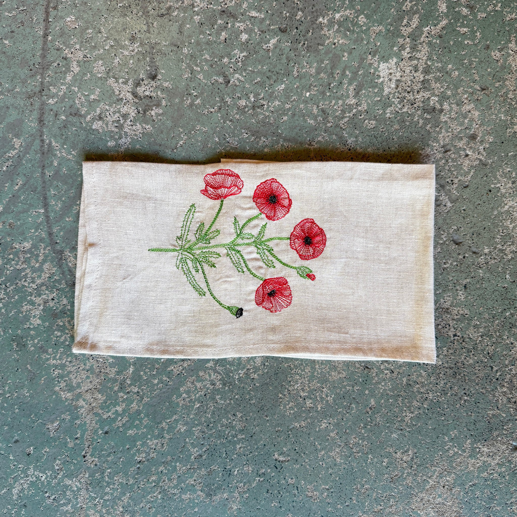 Stunning large napkins embroidered with iconic Australian flora and fauna on the softest Belgian linen!
