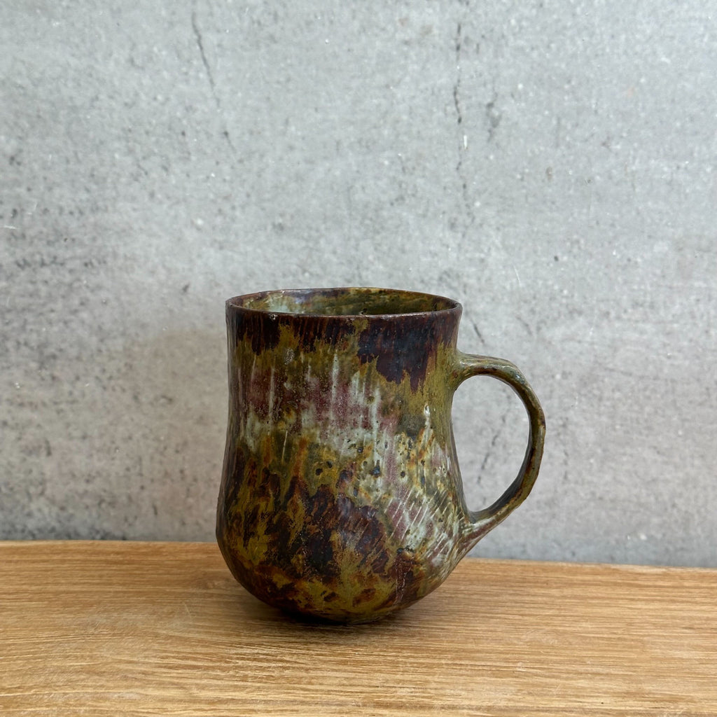 One of a masterful series of stoneware mugs from December 2024 by Australian ceramicist Timna Taylor.