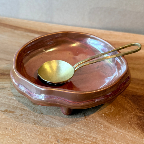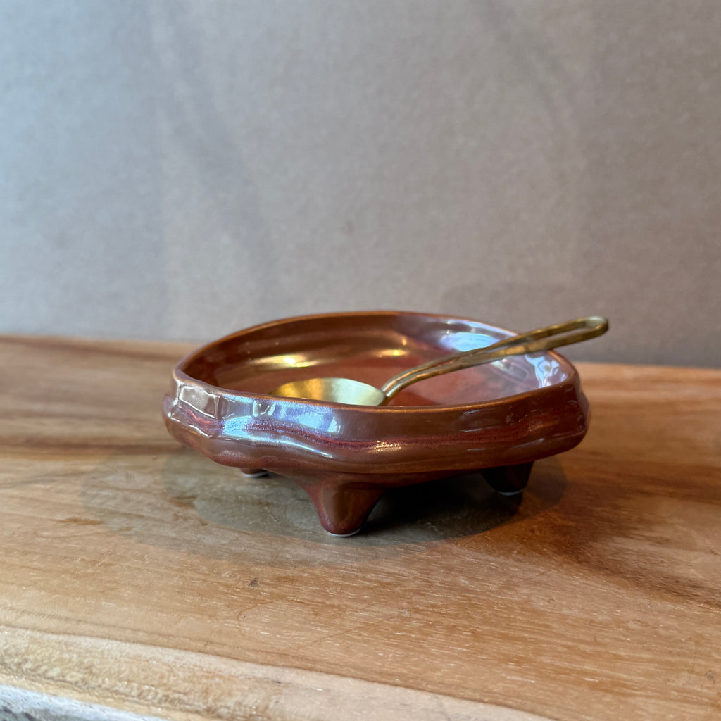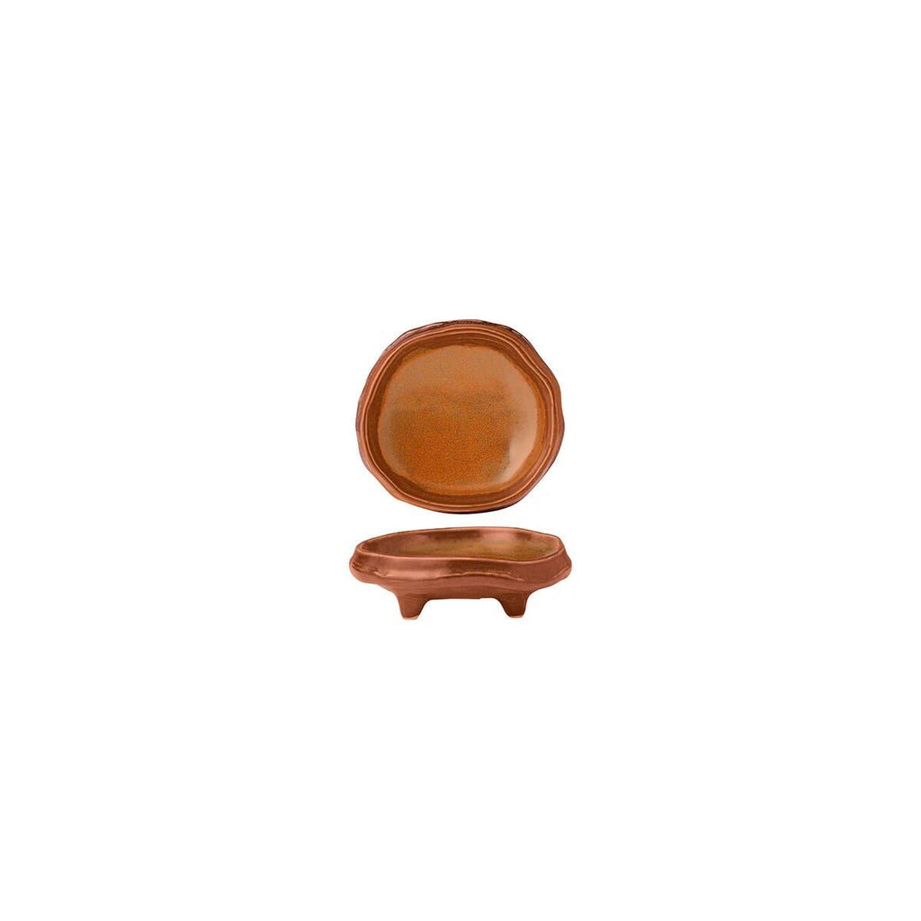 With an organic rim and raised on small feet, this sweet little vessel is perfect for serving pickles, small portions and especially Asian style dishes.