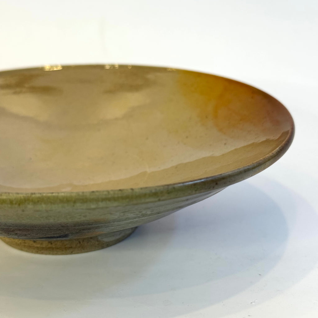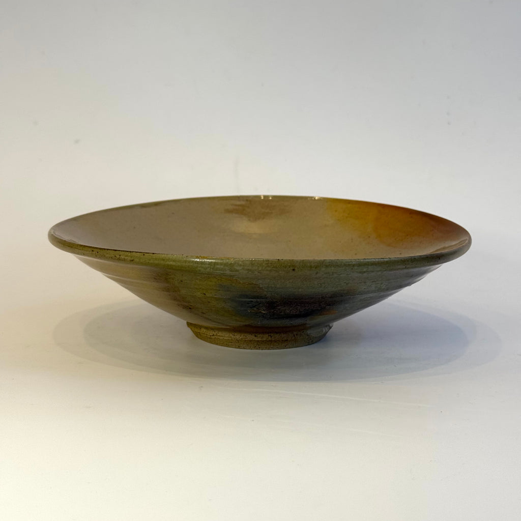 Medium-sized, wide, shallow ceramic bowl in a granite glaze by Yukiko Tsuchiya from November 2025.